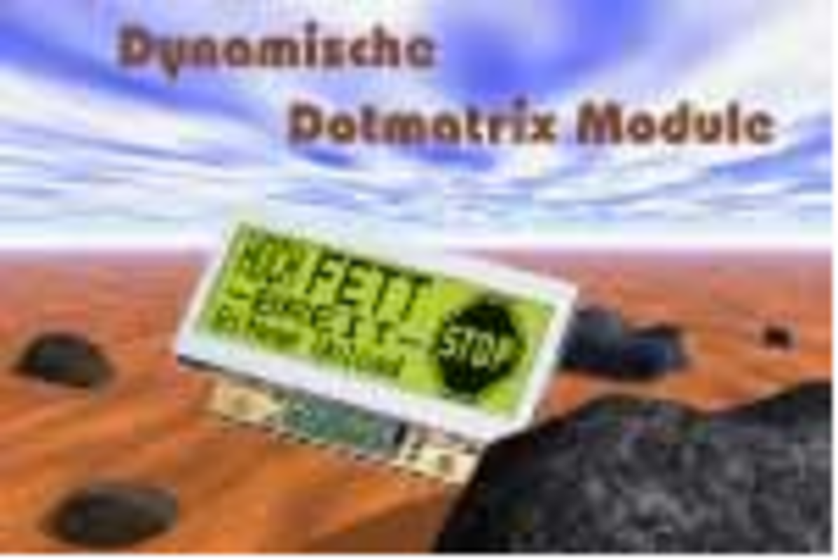 Les modules de matrice de points dynamiques peuvent basculer entre quatre polices de tailles différentes. La police peut être réglée de normale à double hauteur ou double largeur ainsi que double hauteur et double largeur. Il est ainsi possible de construire un écran clairement structuré avec des moyens très simples. Il est également possible d'afficher des symboles graphiques sur l'écran LCD. Huit types différents sont disponibles, avec quatre à 16 lignes et 16 à 40 caractères par ligne. La taille des caractères peut être réglée entre 4 mm et 8 mm environ.
