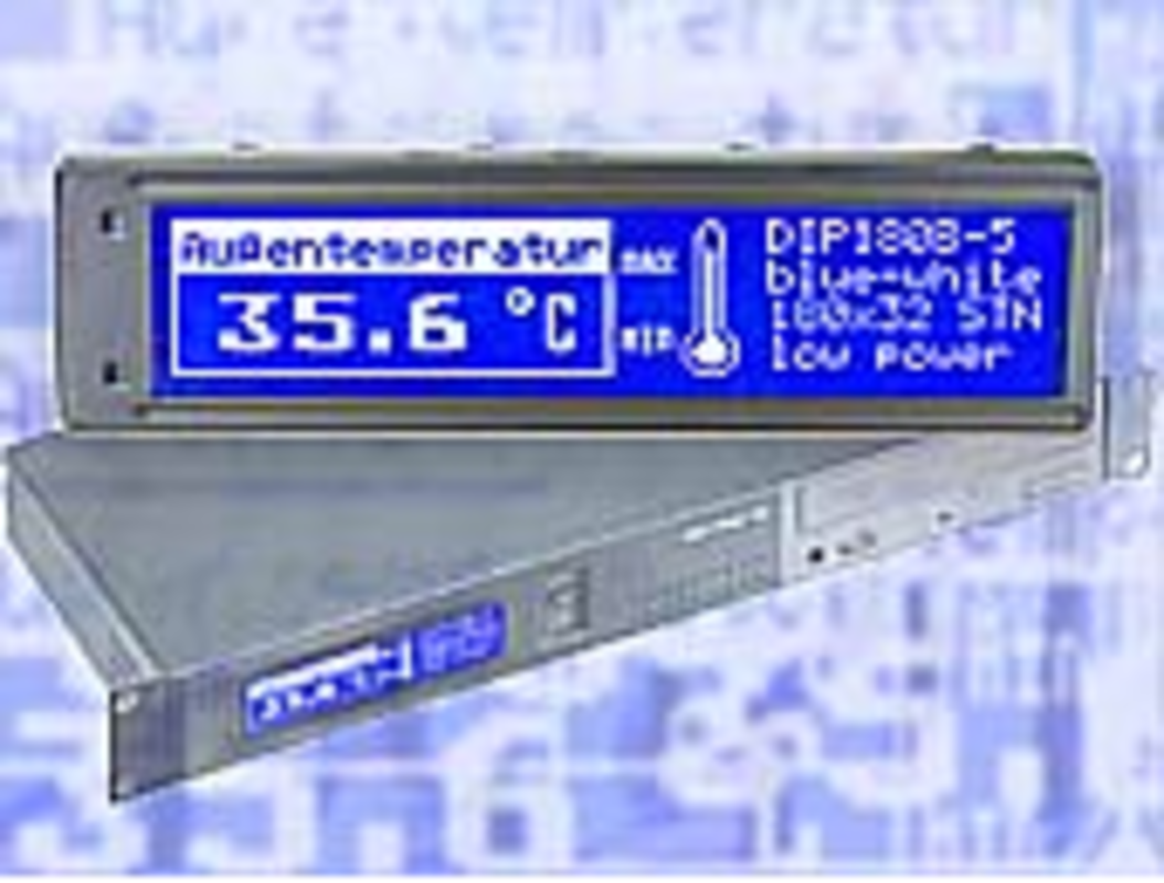 Dans le domaine des "affichages standard", ELECTRONIC ASSEMBLY ajoute un nouveau membre à sa famille de modules DIP. Le nouveau EA DIP180B-5NLW est un module graphique bleu et blanc de 180 × 32 pixels. Il se caractérise par un très bon contraste et un éclairage LED clair avec seulement 45 mA max.