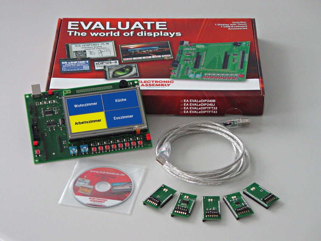 Les kits d'évaluation contiennent chacun un écran intelligent avec son panneau tactile ainsi qu'une carte d'interface pour une connexion directe à l'ordinateur. La carte est reliée à un ordinateur via un port USB, sur lequel est installé l'environnement de développement également fourni. Celui-ci permet de créer des démonstrations à volonté, de modifier les jeux de caractères internes et de définir ses propres macros. De plus, d'innombrables exemples "how-to-use" sont disponibles pour être imités.