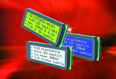 Lorsque l'espace est limité, par exemple dans les appareils mobiles ou dans les armoires électriques, ces afficheurs sont idéaux : ils offrent 4 lignes de 20 caractères chacune pour des dimensions extérieures extrêmement compactes de 75x27mm.