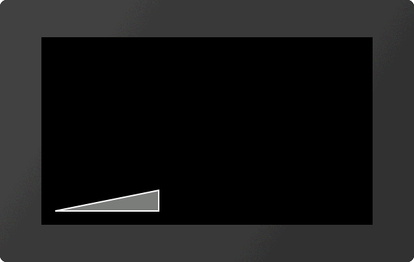 The command places a triangular Bargraph with the Anchor, Width and Height at the position x, y. The filling color is taken from the DrawStyle-Filling. The DrawStyle-Background specifies the background and frame color. The structure of the DrawStyle sub-chapter is explained in more detail. The tip is on the left side. The optional parameter Tip specifies the position of the tip:
