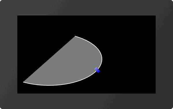 The command places a curved Bargraph with the Anchor and given Thickness at the position x, y. The size is determined by the parameters Radius, StartAngle and EndAngle. The filling color is taken from the DrawStyle-Filling. The DrawStyle-Background specifies the background and frame color. The structure of the DrawStyle sub-chapter is explained in more detail. The StartValue and EndValue determine the two limits of the Bargraph. The running direction is determined by Direction: