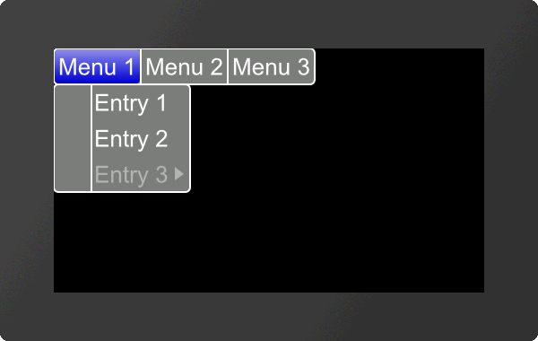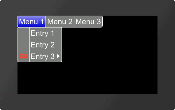 The menu defined with the commands #EMS and #EMD is placed with the given Anchor at x, y. The Radius parameter gives the corner rounding. With the two optional parameters (BorderX and BorderY) the distance of the text to the edge of the menu is specified. With the parameter Time the opening / closing of the menu can be animated in 1/100s.