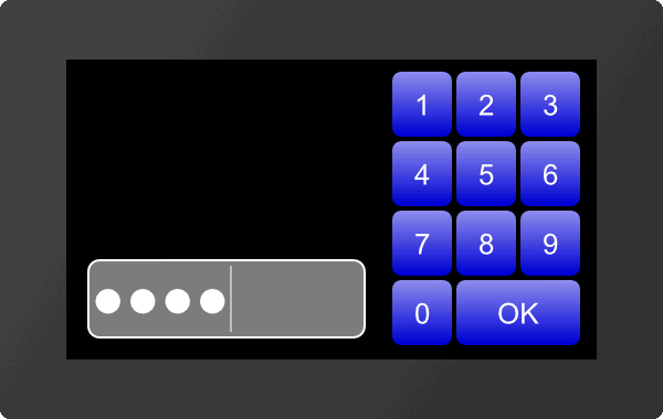 An input mask is defined for the EditBox. The Placeholder parameter defines the visible character code (e.g. '_'). Following masks are possible: