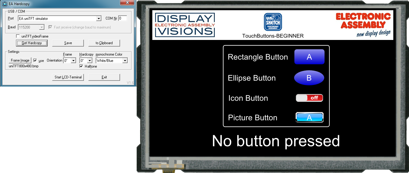 Besides the design-software uniTFTDesigner there are a number of other Windows-Tools. Among them is the tool EA uniTRANSFER which can transfer projects to the EA HMI-Series. For documentation purposes, it is often very helpful to take a screen capture to illustrate different situations. Here the tool EA Hardcopy can be of help. The most powerful tool is the EA uniTFT simulator, which simulates the real hardware on the PC.