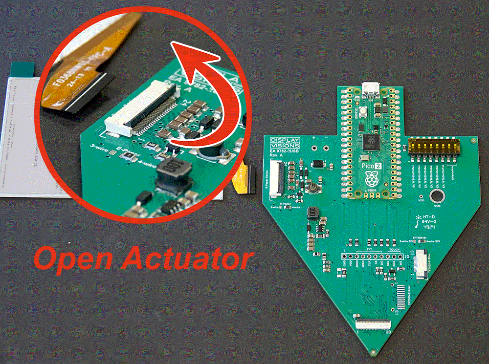 Un contrôleur se trouve déjà sur l'écran à côté du pilote IC. Il peut être piloté pixel par pixel via une simple interface SPI. Vous trouverez ici des informations techniques et des indications sur la manière de remplir l'écran avec votre propre contenu.